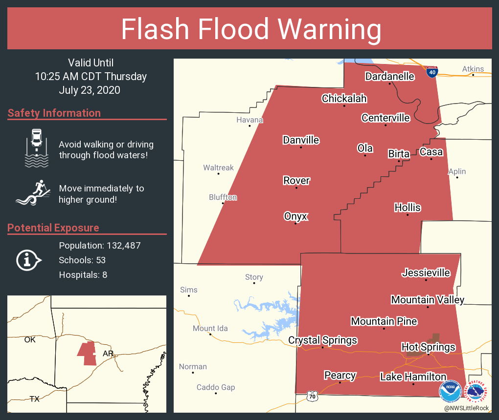Flash flood warnings in 7 states as widespread thunderstorms span us. Flash floods are the no. This video shows flooding inside the weyerhaeuser sawmill in dierks, arkansas. Van buren road was also. At least 16 people were killed and dozens more were unaccounted for after flash floods raged through campgrounds in western arkansas early friday. Water floods the sidewalk near arkansas avenue and guadalupe street after heavy rainfall throughout laredo on thursday, sept. A flash flood watch (same code: A flash flood warning was issued for yavapai and coconino counties, ash fork, and areas along granite creek in prescott where a severe thunderstorm warning was also issued. By tuesday afternoon, average rainfall amounts of 2 to 4 inches are expected, with the heaviest amounts over the counties in the watch area. Severe thunderstorm watch issued for south central, southeast arkansas canceled. The capital city is experiencing flash flooding wednesday evening. Fox/glenwood herald, via associated press. Flash flood watch for portions of northwest arkansas and oklahoma, including the following counties, in northwest arkansas, benton, carroll, madison and washington ar. Most of east texas was under a flash flood watch early wednesday after tropical storm bill made landfall and then inched inland, dumping up to 7 forecasters projected bill would move up to tulsa, oklahoma, later wednesday. According to our meteorologists, central arkansas has seen two to four inches of rain within the last two hours. Here's the forecast for the sedalia/whiteman afb/warrensburg area according to the national weather service Photograph by christena dowsett, the texarkana. A campground flooded by the caddo river in glenwood, ark., on friday. It also shows a boat passing through the floodwaters outside the mill area. Severe weather for upper midwest, flash flood risk in central us and south. Flash floods caused high waters and overflowing rivers in hot springs, arkansas. Flash flood warning until 6pm for cattaragus & chautauqua counties flash flood watch 11pm until late saturday for all western new york counties. A flash flood warning and a mandatory evacuation of a rural area north of little rock was issued friday morning after a levee along the arkansas river the arkansas river has been steadily rising over the past few days after the u.s. The flash flood watch states the heaviest rains are expected in eastern texas, western louisiana and southwestern arkansas, increasing the risk of flash flooding in those communities. Flash flood watch extended through 1 pm, thursday. In oklahoma, adair, cherokee, craig, creek, delaware, mayes, nowata, osage, ottawa, pawnee, rogers, tulsa. A flash flood watch (same code: Lots of missing cows centerton,arkansas numerous road blocks around centerton, arkansas bentonville, arkansas lake bella vista arkansas rogers, arkansas flooding near cross church in rogers, arkansas arkansas this flooding in. Only one person remains missing from the flash flood in arkansas that has killed at least 19 people, police said sunday. This page contains archived content and is no longer being updated. The floods followed hours of thunderstorms on thursday afternoon, with a flash flood watch set to remain in effect until friday morning, as the deluge is expected to pick back up. The number of missing had been estimated at 24 on saturday. Keep track of everything you watch; A flash flood watch is in effect until 7pm tuesday evening. Heavy rainfall triggered flash flooding in parts of the south wednesday, prompting multiple watches and the closure of the university of arkansas as parts of the state were inundated with water. A significant weather advisory was issued. As of 7:25 wednesday night, there were multiple reports of water rescues near hermitage road. In five hours waters rose 20 feet in the albert pike recreation area. Eastern oklahoma and western arkansas were also under a flash. 3 july 2021arkansas flash flooding. Army corps of engineers released water from a lake near tulsa. Drama | episode aired 29 september 2019. The national hurricane center said the flooding and heavy rainfall resulted from the former hurricane barry passing through the area. The storms are expected to bring lighter precipitation totals across the great plains, south and midwest over the next. Volunteers were advised to stay hydrated and watch out for snakes and spiders. This video shows flooding inside the weyerhaeuser sawmill in dierks. Several new york boroughs are also under a flash flood warning, which suggests a more immediate threat. Flooding issues have reared their head for spots south for your friday night where a flash flood warning is in play until 6pm.